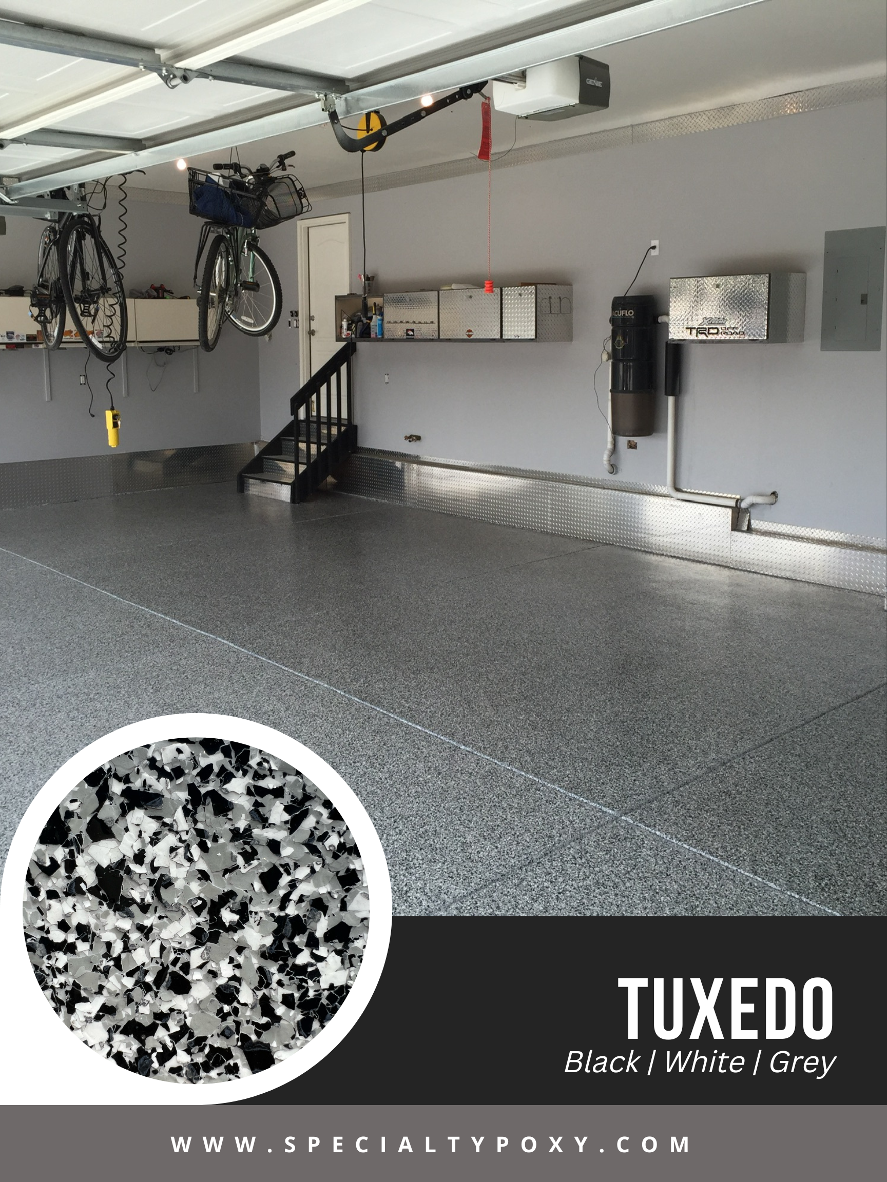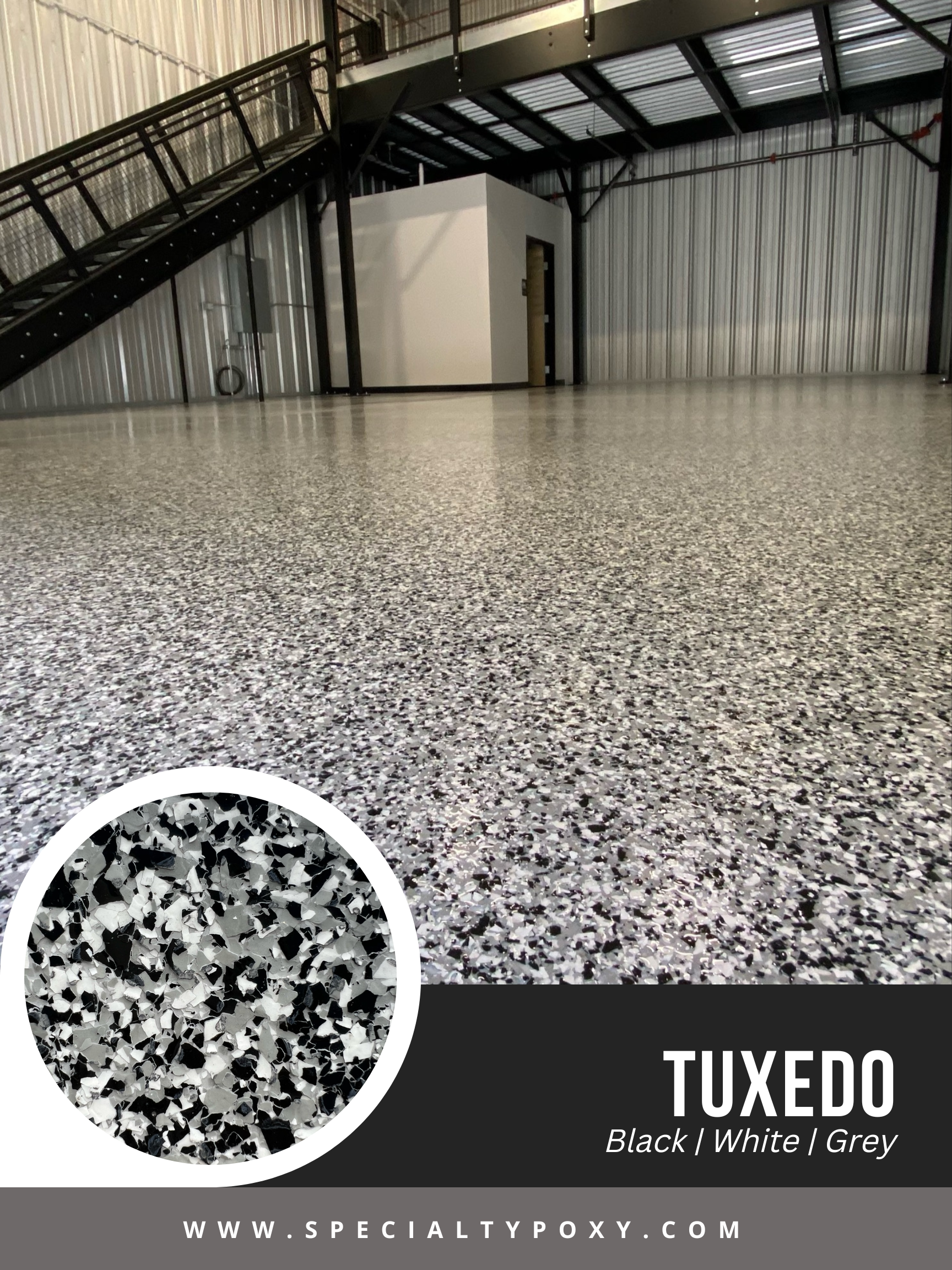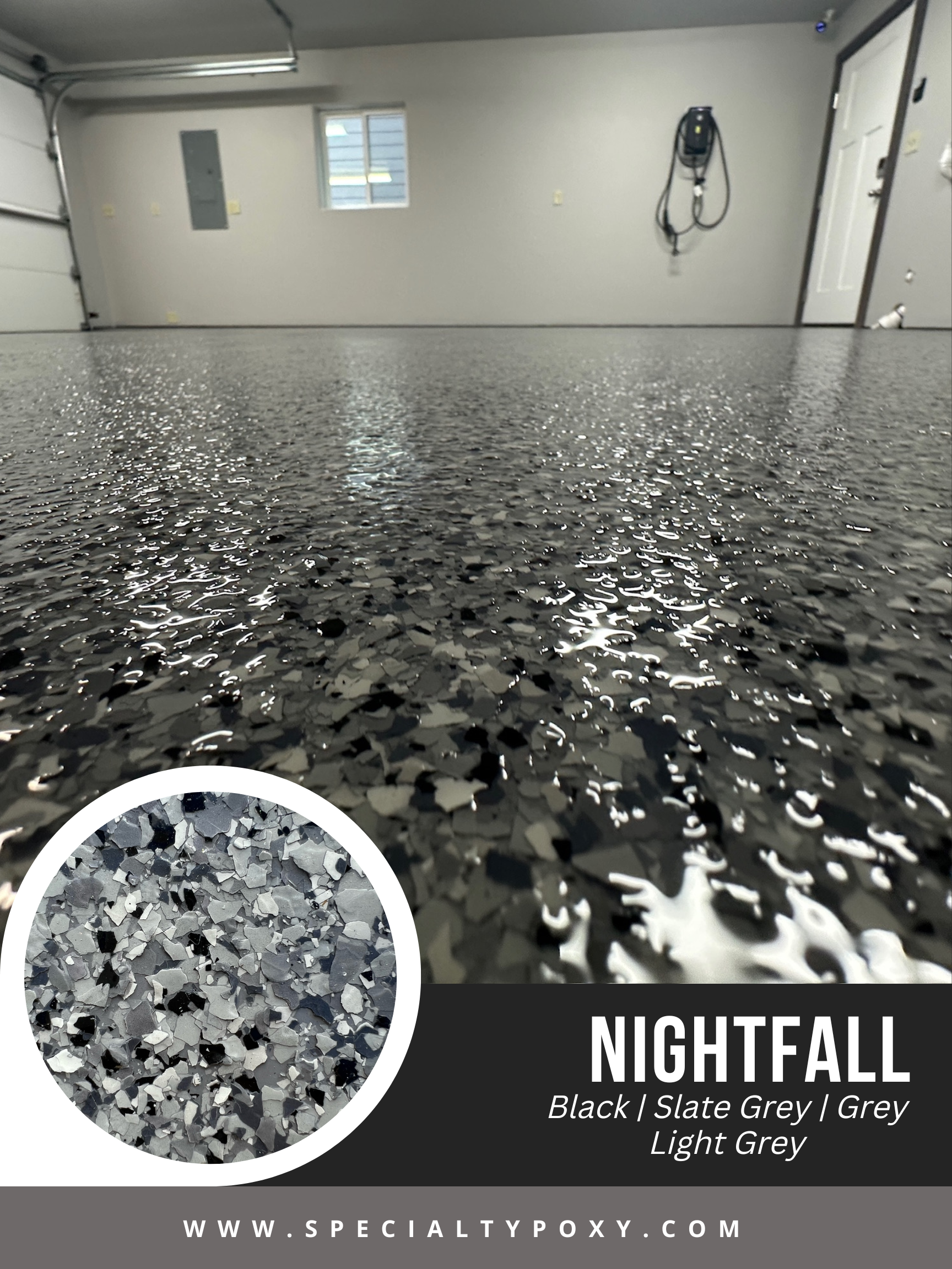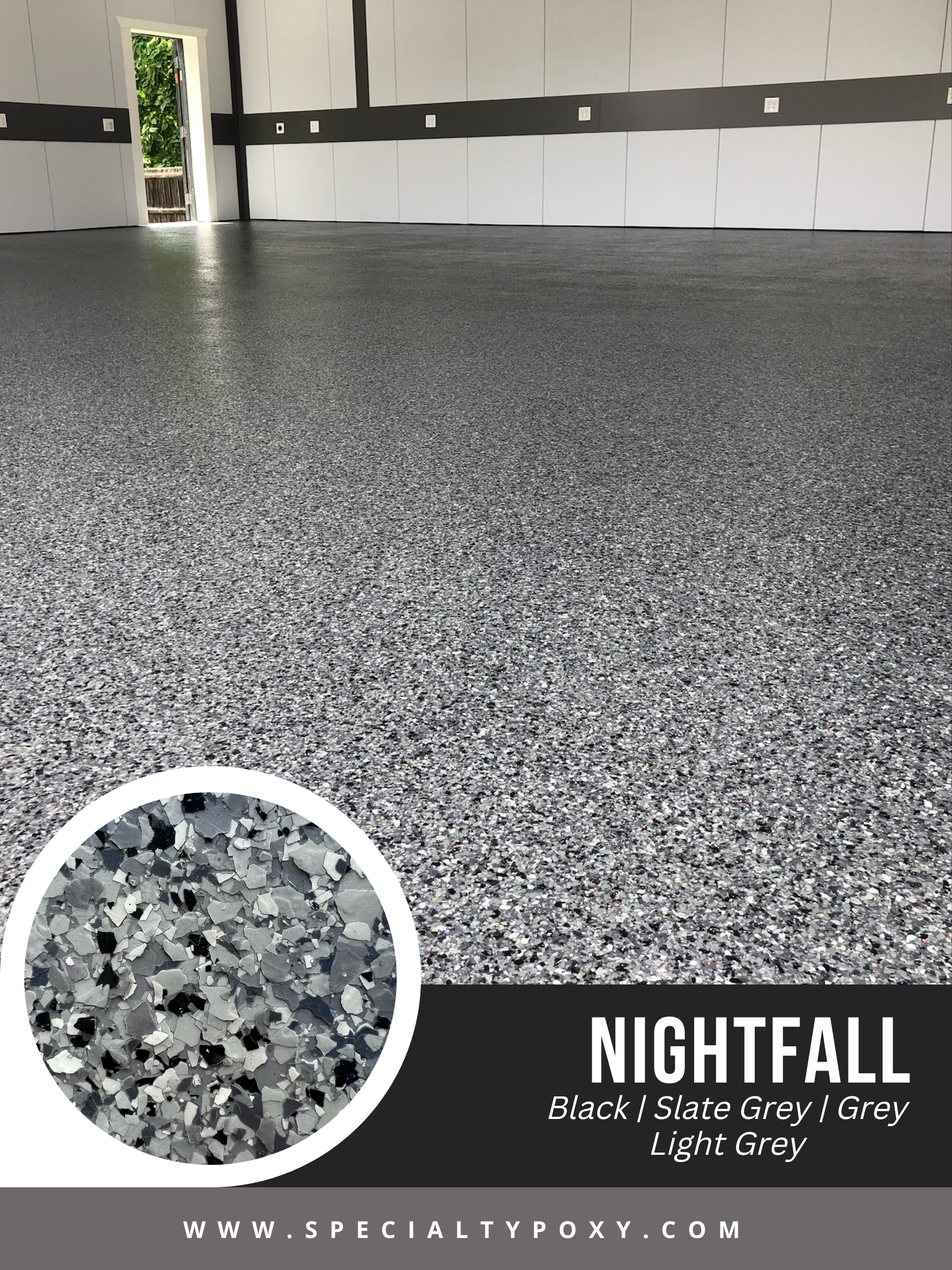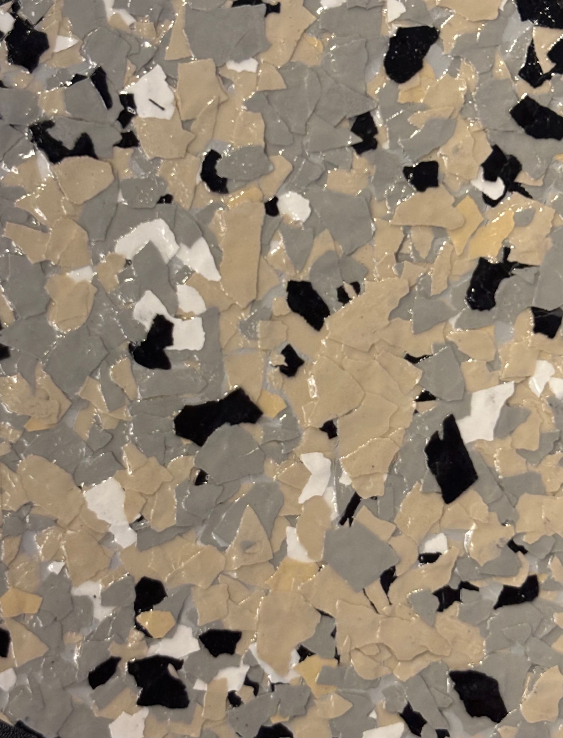 We offer more than 30 varieties* of 1/4” traction flakes. Our most popular finishes are Lunar, Nightfall, Tuxedo, Dakota Grey, and Saddletan. If you are looking for a specific color palette that you don’t see, or would like to discuss adding multi gems to your coating please let us know.